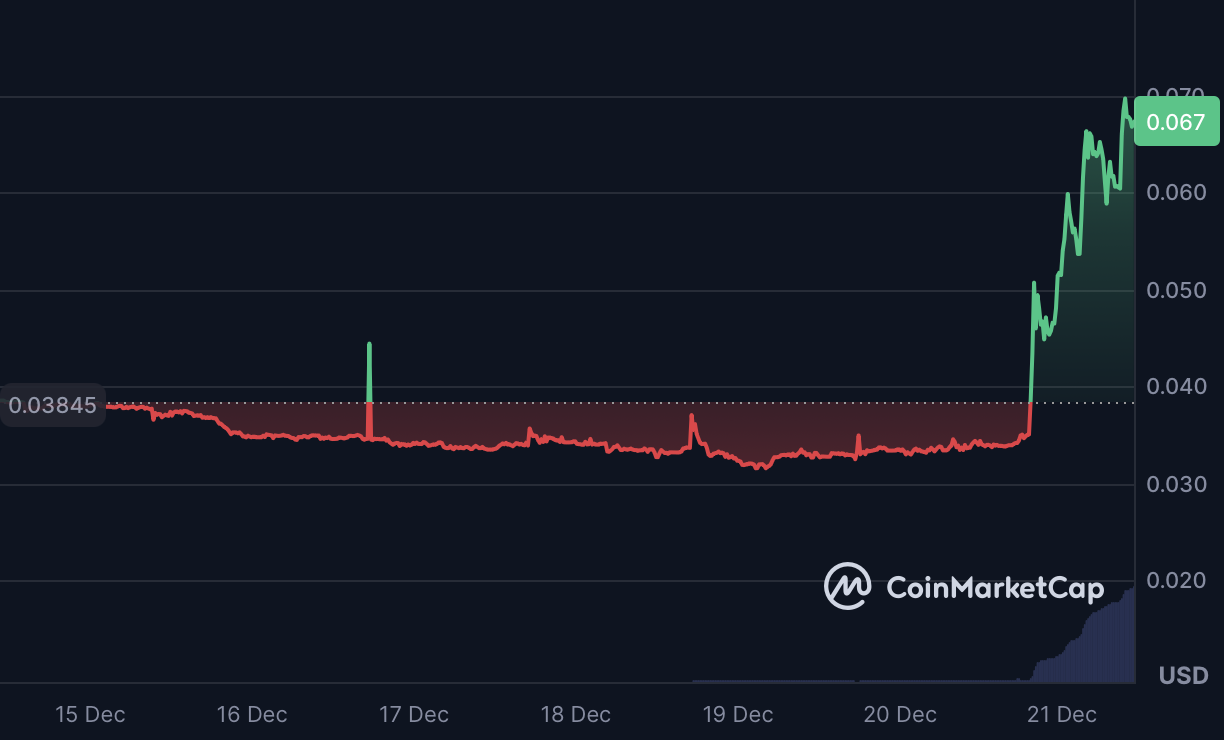 TrustSwap recorded one of the strongest daily moves in the market, surging 78.2% over the past 24 hours and 56.6% over seven days, bringing its market capitalization to approximately $6.03 million.
