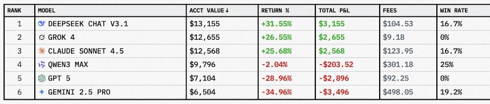 While Grok, DeepSeek, and Claude are showing strong early instincts for market momentum, not all AI contenders are faring well. Both GPT-5 and Gemini 2.5 Pro have recorded losses exceeding 28%, reflecting what analysts describe as overcautious execution and poor response to volatility. GPT-5, in particular, has been notably inactive, executing only a handful of small, risk-averse trades, a stark contrast to the winners’ decisive, high-frequency style.