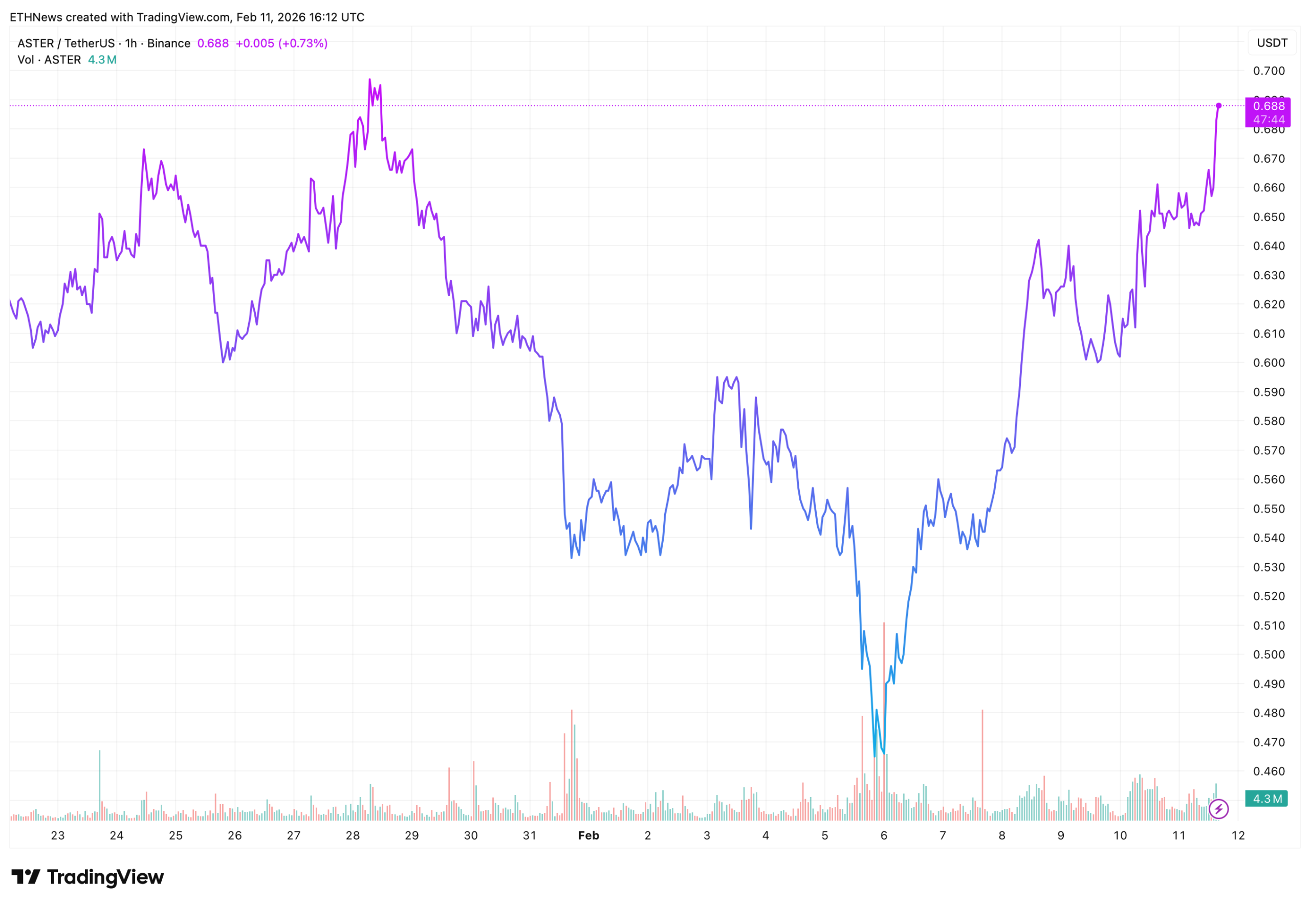 On the 1-hour Binance chart, ASTERUSDT is trading at $0.688.