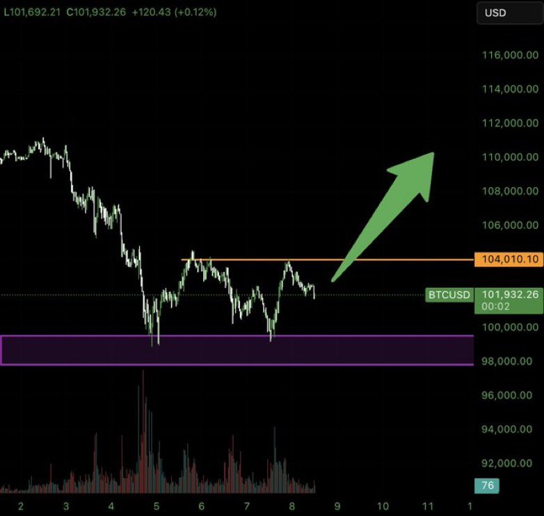 - First resistance: $104K (confirmation trigger)