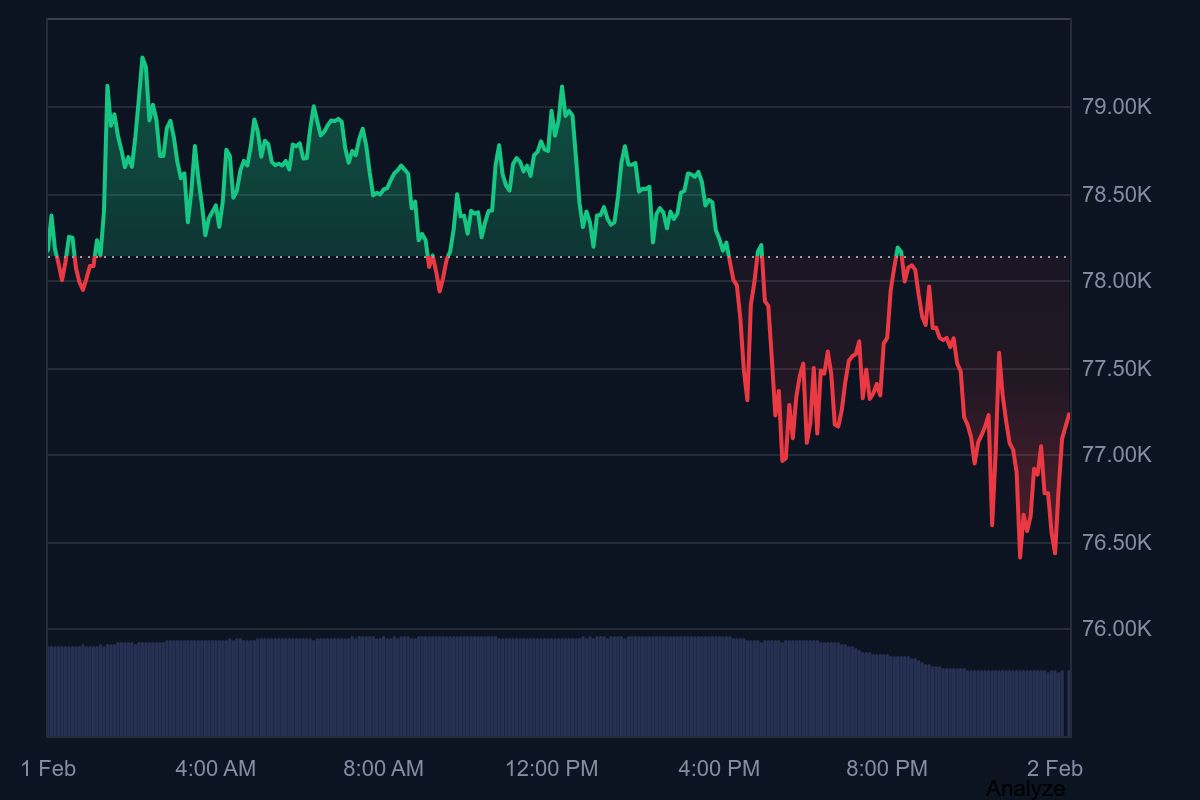 The current setup near $77K fits within that historical framework, with stress rising among recent buyers while longer-term structure remains intact.
