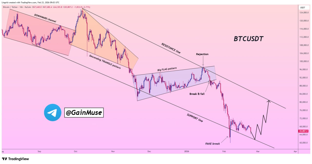 For now, the key level remains the recent low near $65,000. As long as that level holds, the upside rotation scenario outlined by GainMuse remains technically valid.
