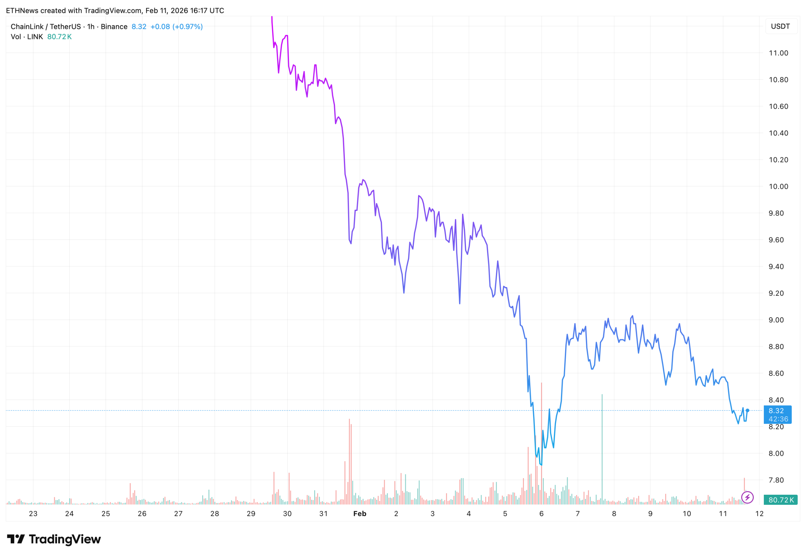 At $8.32, LINK is trading: