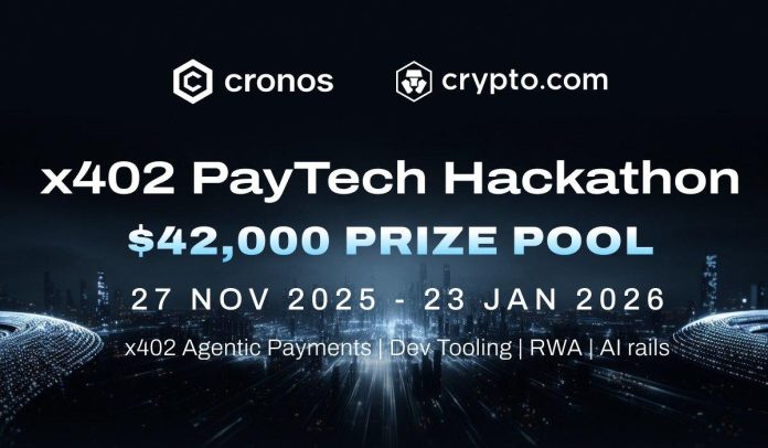 Cronos has announced the x402 PayTech Hackathon, a global builder challenge with a $42,000 USD prize pool designed to accelerate innovation in AI-native, on-chain payments. The event invites developers to explore new applications powered by x402 agentic payments, the Crypto.com AI Agent SDK and emerging infrastructure across the Cronos and Crypto.com ecosystem.