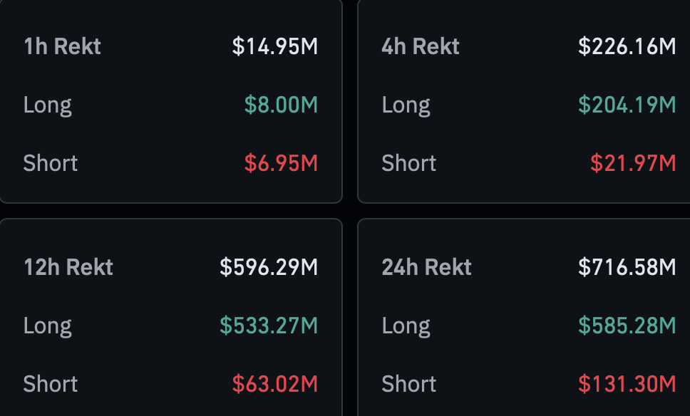 Data from Coinglass shows billions of dollars in liquidations over the past 24 hours, with long traders absorbing most of the damage.