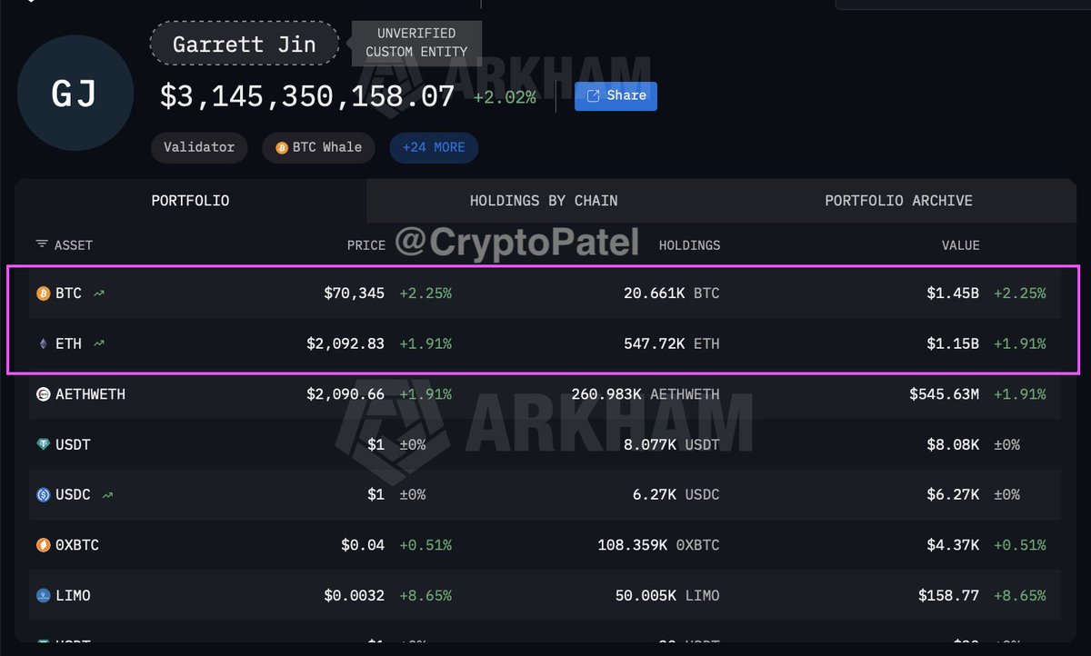 - 20,661 BTC (~$1.45B)