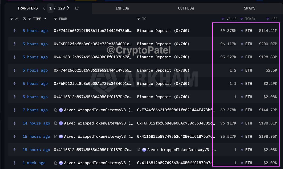 These transactions were routed through Aave-related addresses before reaching Binance, indicating structured movement rather than a single direct transfer.