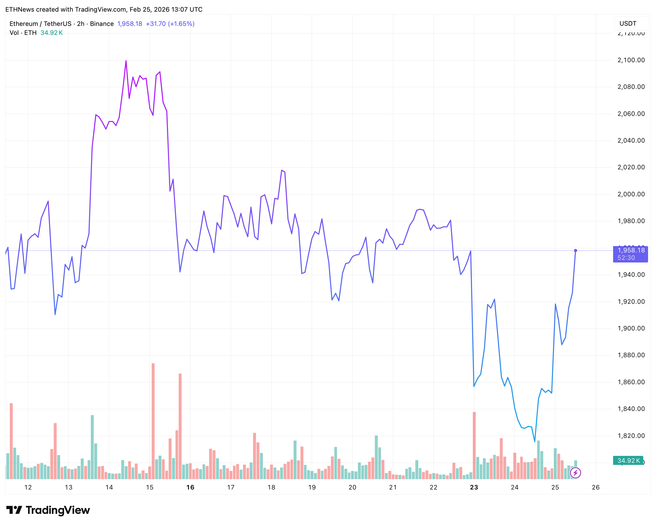If ETH continues holding above the rising support line, momentum favors a move toward the major descending resistance line overhead, currently positioned near the psychological $2,000–$2,050 region.