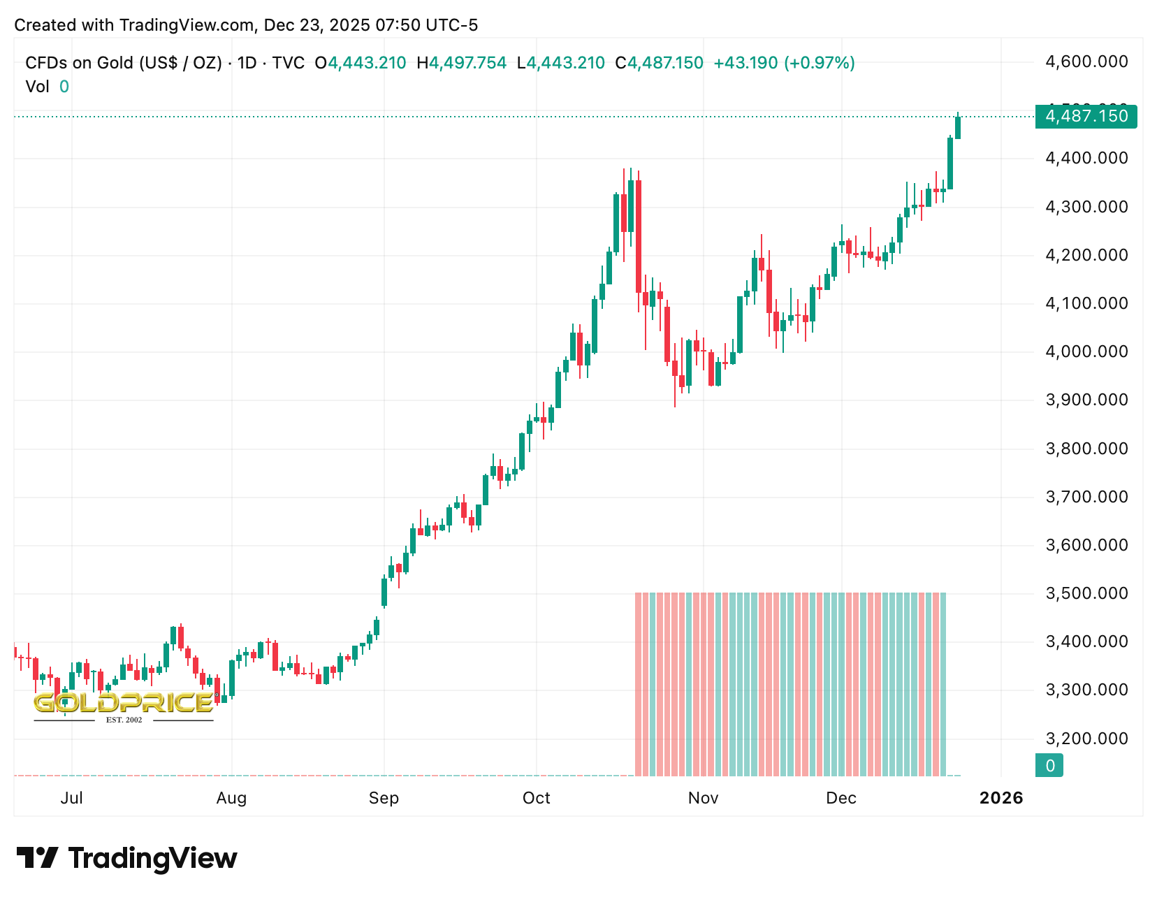 Gold breaks the all-time high and is cruising at $4,500.