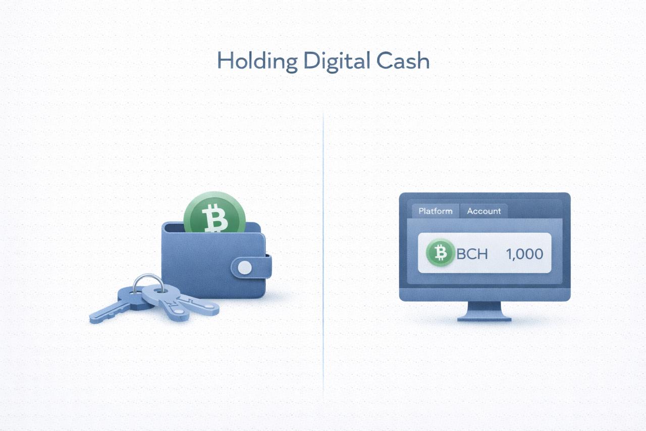In traditional finance, assets are usually held by institutions on behalf of users. Bitcoin Cash can be held that way too, but crypto also allows direct ownership through self-custody.