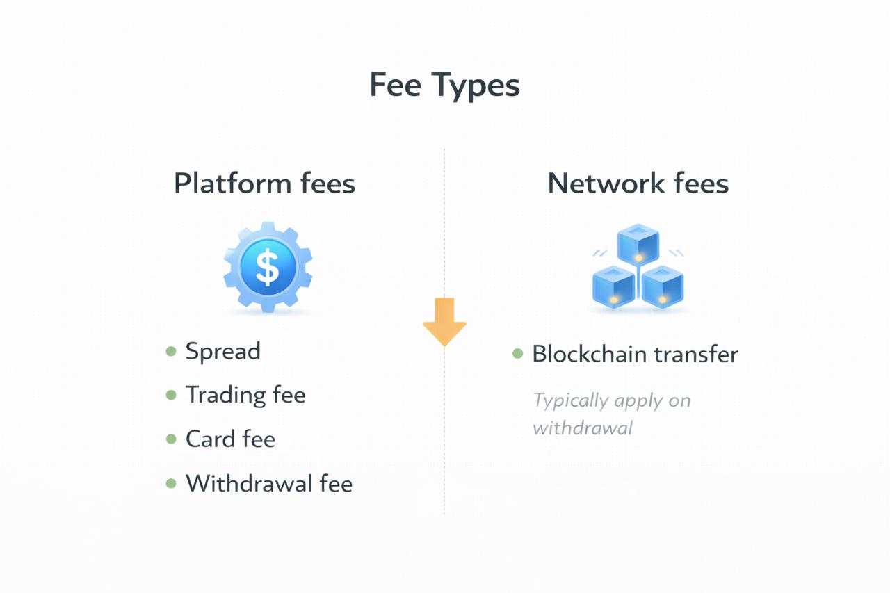 Platform fees include trading fees, deposit fees, withdrawal fees, and spreads embedded into the quote. These vary widely across services and payment methods. For a detailed breakdown of how these costs show up in practice, Crypto Exchange Fees Explained is a useful reference.