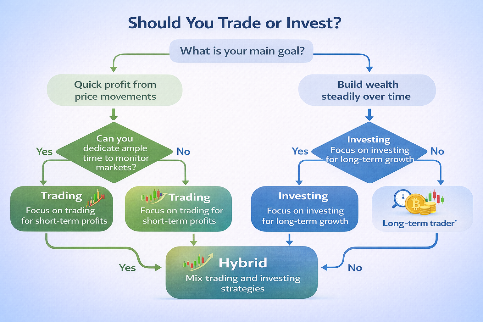 Trading and investing can coexist when clearly separated. Many participants maintain a long-term investment portfolio while allocating a smaller portion of capital to trading activities.