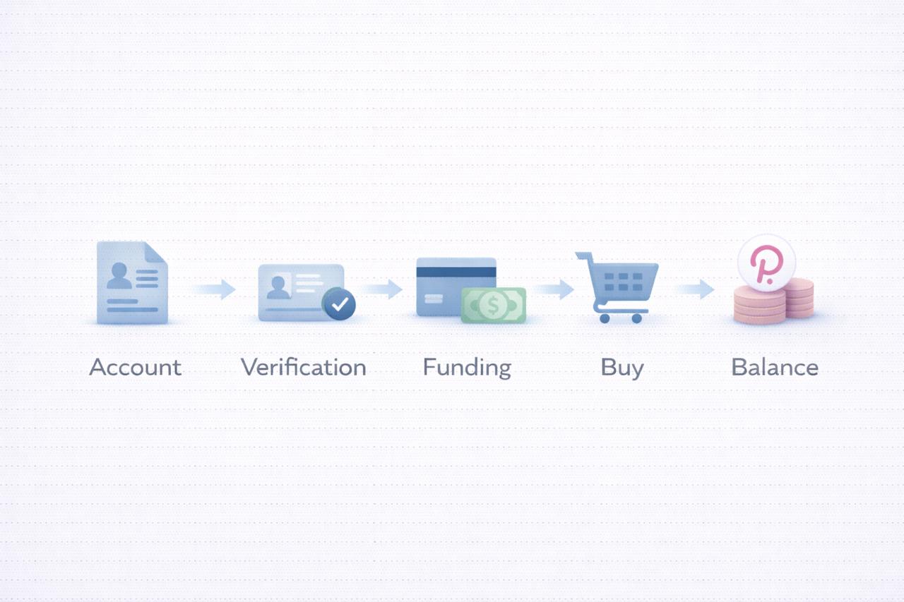 For first-time buyers using a centralized exchange, the process usually follows a predictable sequence. After creating an account, users complete identity verification and deposit funds using a supported payment method. Once the balance is available, DOT can be purchased through a simple buy interface or a trading screen.