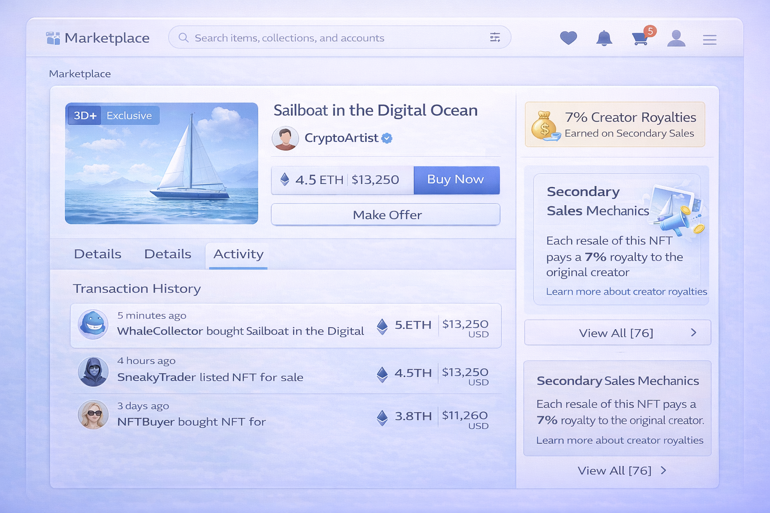 NFT marketplaces serve as the primary interface between creators and collectors. They allow NFTs to be listed, discovered, bought, and resold, often with integrated wallet support and on-chain settlement.
