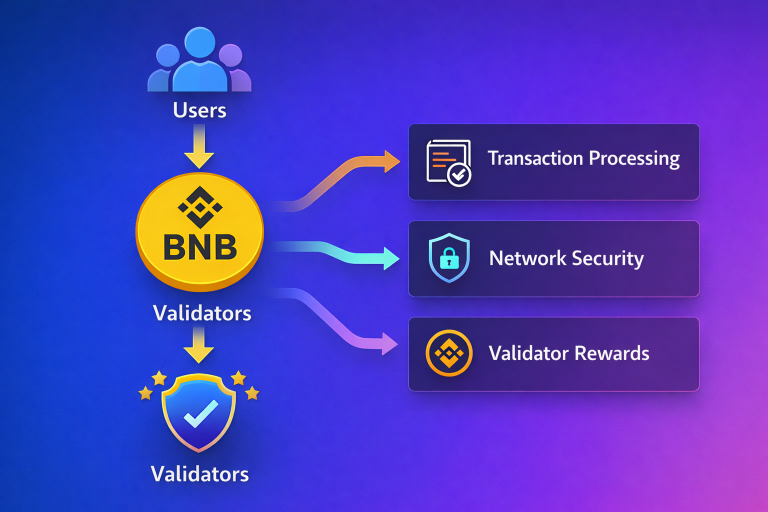 - Validators earn BNB for processing transactions