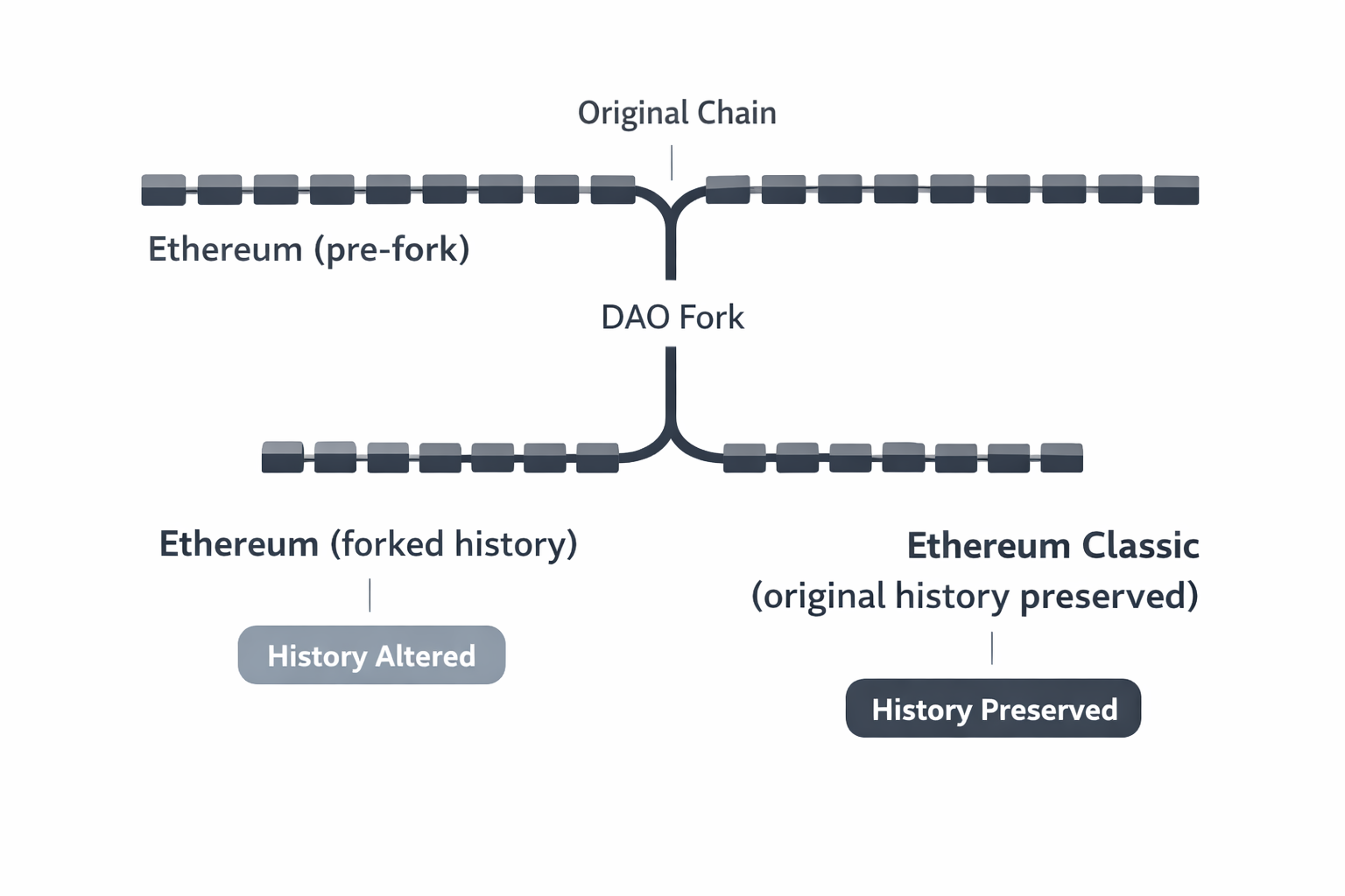 The decision to fork created two chains. One moved forward with altered history. The other, which became Ethereum Classic, remained unchanged. In doing so, it transformed a technical disagreement into a lasting ideological split about governance, responsibility and the meaning of decentralization.