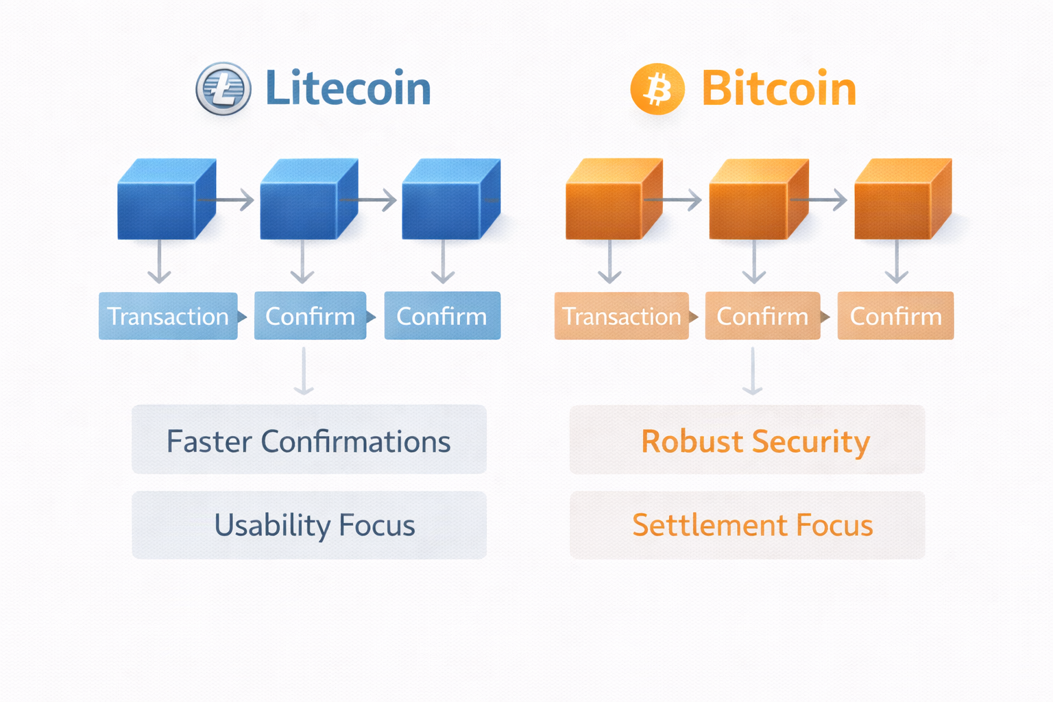 Litecoin’s architecture reflects a deliberate trade-off. By reducing block times relative to Bitcoin, the network enables faster transaction confirmations, making it more suitable for everyday payments.