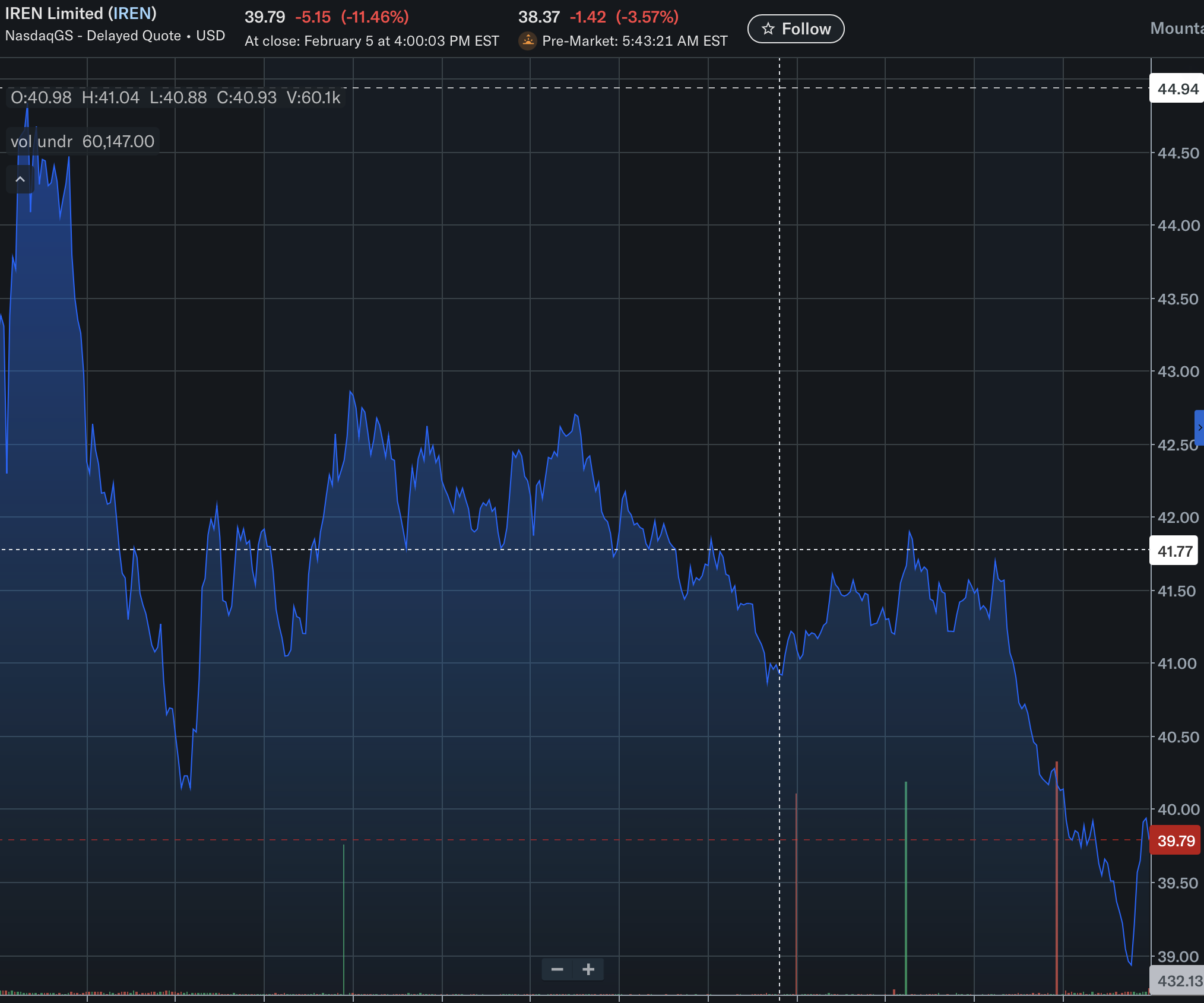 Shares of IREN and CleanSpark sold off sharply during and after regular trading following weak Q4 2025 earnings reports that landed amid a sudden Bitcoin drop under $62,000. The combination of revenue misses and deteriorating price conditions intensified pressure across the publicly listed mining sector.