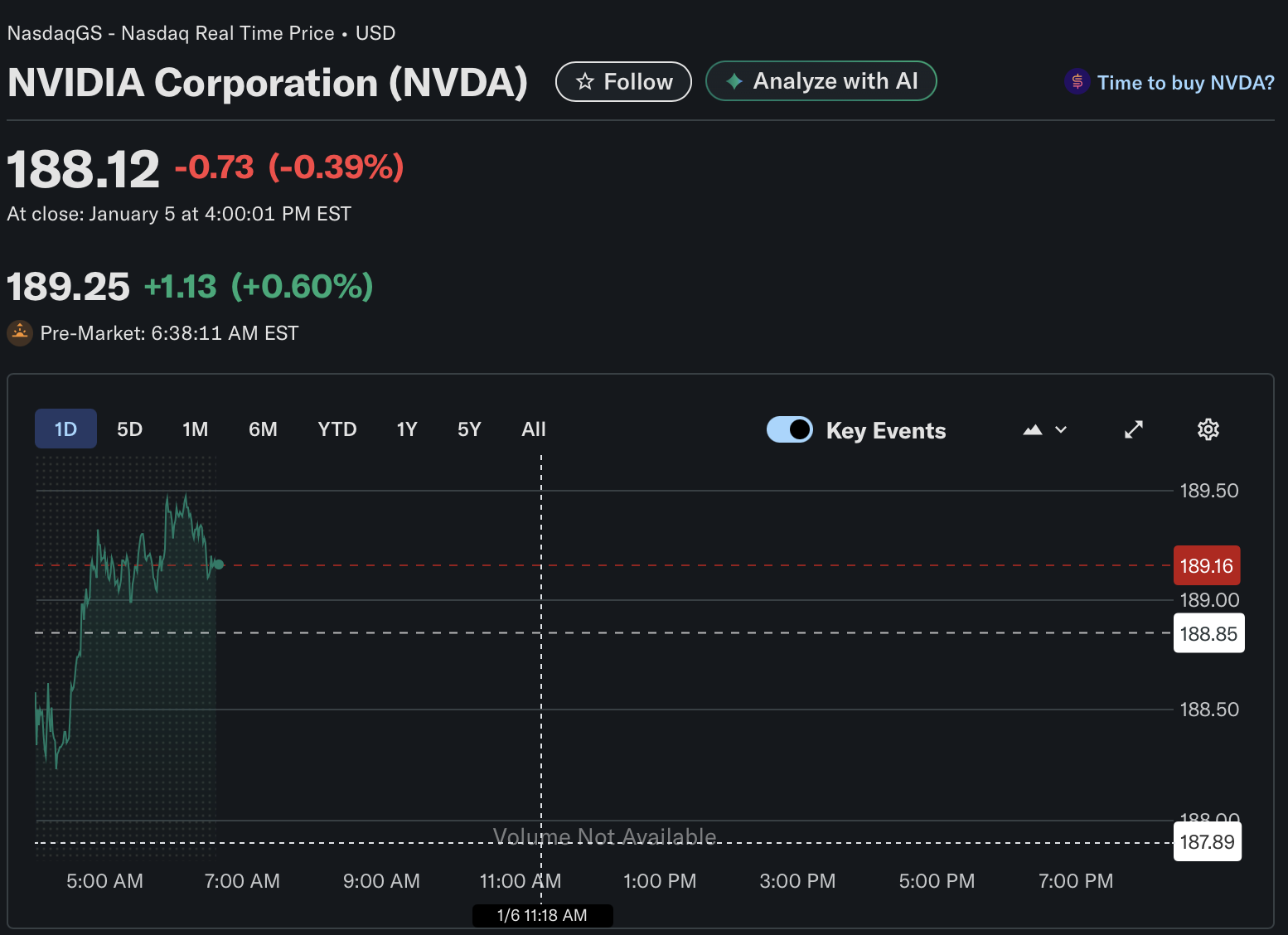 Nvidia (NVDA) shares closed slightly lower at around $188.11 on January 5, 2026, following the company’s unveiling of its next-generation Rubin AI platform at CES 2026. The muted market reaction suggests the announcement was largely priced in, as analysts had already anticipated the platform’s debut.