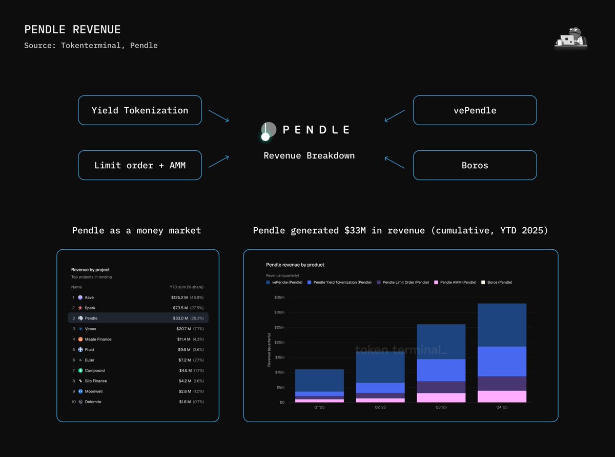 Pendle’s revenue model is designed with clear alignment between the protocol and its long-term participants:
