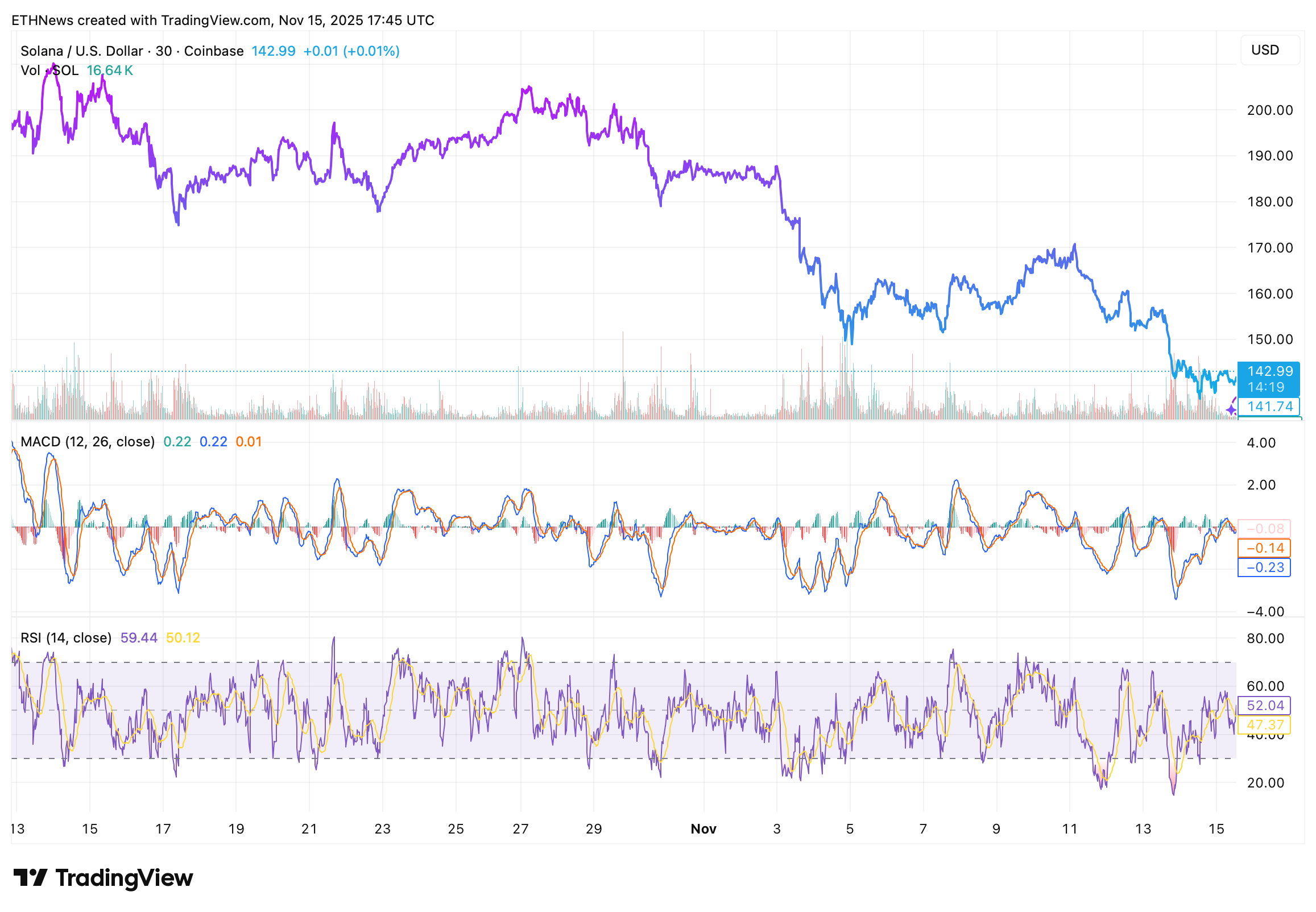 Solana (SOL) ended the day near $142–$143, based on your attached chart, after a steady multi-day decline that has pushed the price to its weakest levels in over a month. Momentum continues to show signs of erosion, and analysts are now focusing intensely on one line that could define Solana’s next major move: $124.