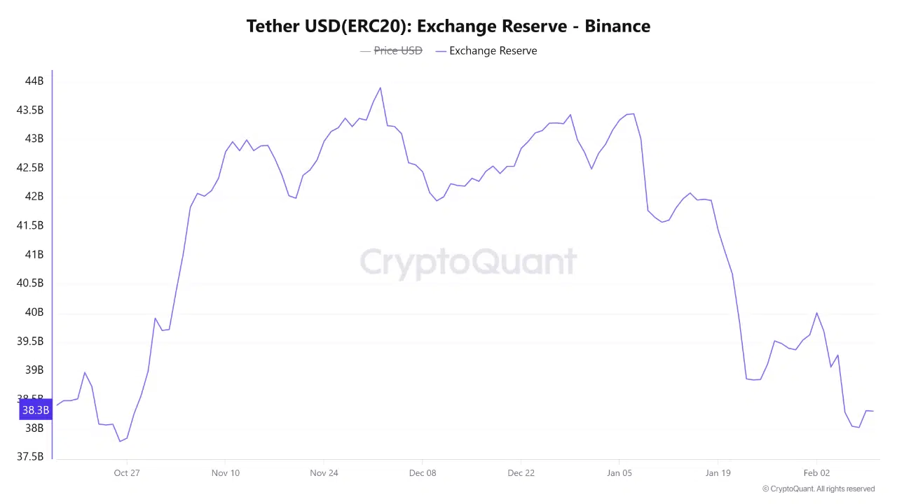A large share of the outflows originated from major venues. Binance alone saw its USDT reserves decline from around $43 billion to near $38 billion, accounting for a meaningful portion of the aggregate reduction. The consistency of withdrawals across exchanges suggests coordinated capital repositioning rather than routine balance adjustments.