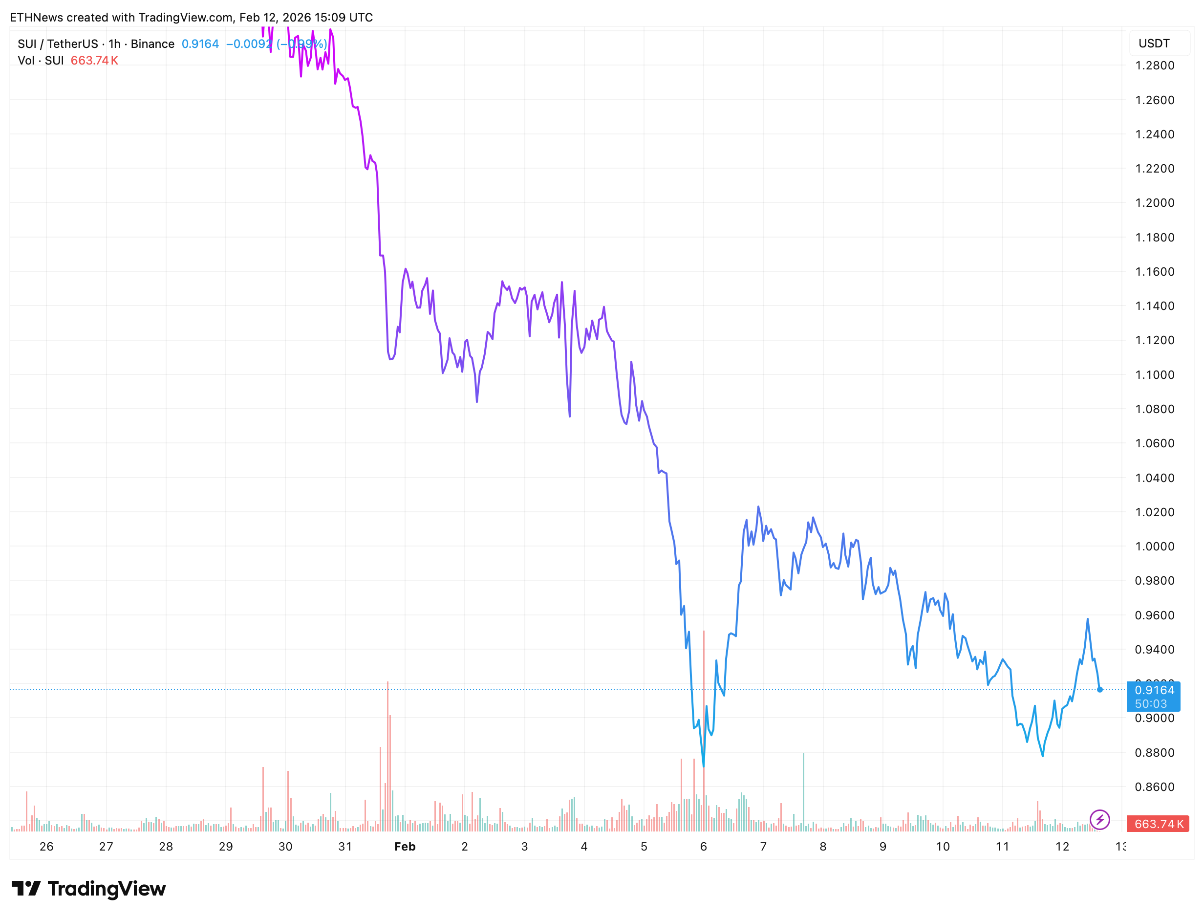 SUI is showing early signs of stabilization after a prolonged period of downside pressure. Following a sharp selloff that unfolded into early February, price action has shifted into a more controlled consolidation phase, suggesting the market is attempting to establish a short-term base rather than continuing a straight-line decline.