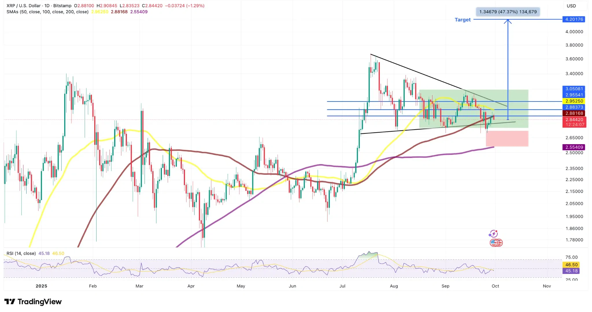 Analyst Gordon observed that a breakout from this pattern could lead to a rapid and forceful price advance. Separate reports note XRP is positioned for its strongest quarterly closing price on record, establishing a foundation for possible gains in the final quarter of the year.