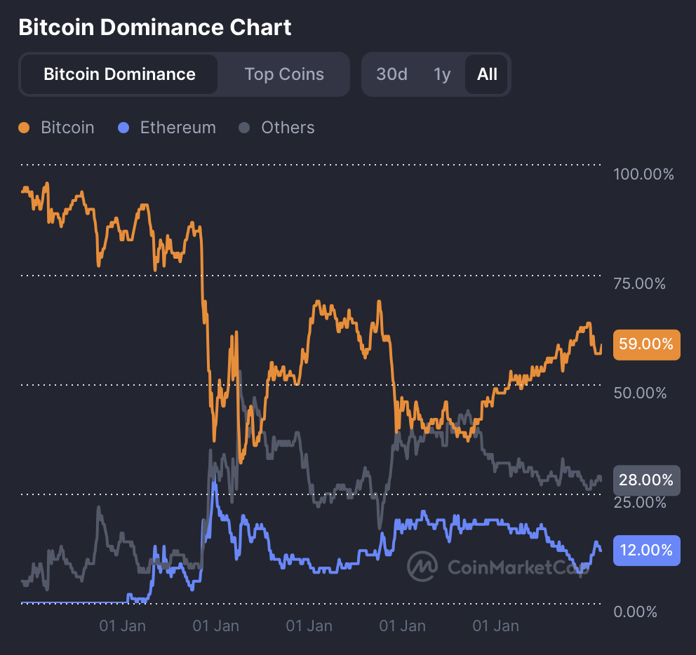 With Bitcoin dominance steady near 59% and the Altcoin Season Index at 37/100, the current market still favors cautious positioning.