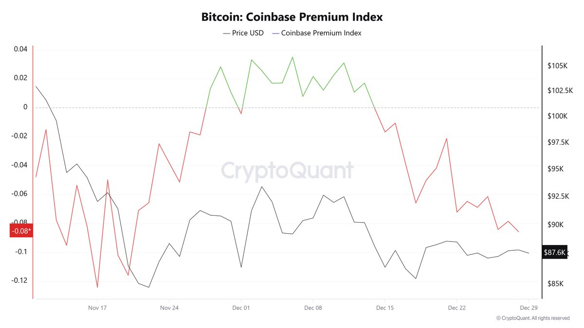 Coinbase Premium Signals Sustained US Selling