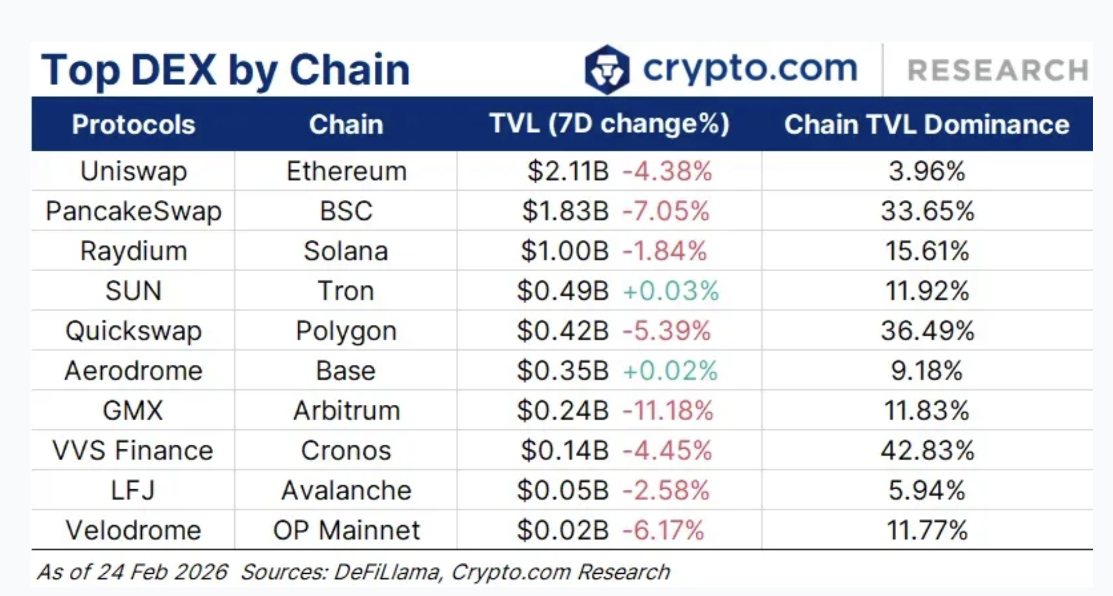 Overall, most DEX platforms recorded negative 7-day changes, reflecting broader cooling across DeFi liquidity.