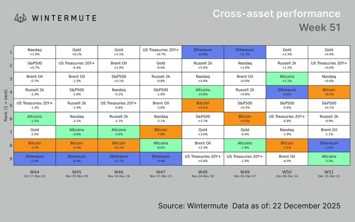 According to Wintermute, leadership continues to narrow, liquidity is thinning, and Bitcoin and Ethereum are increasingly absorbing risk for the entire market.