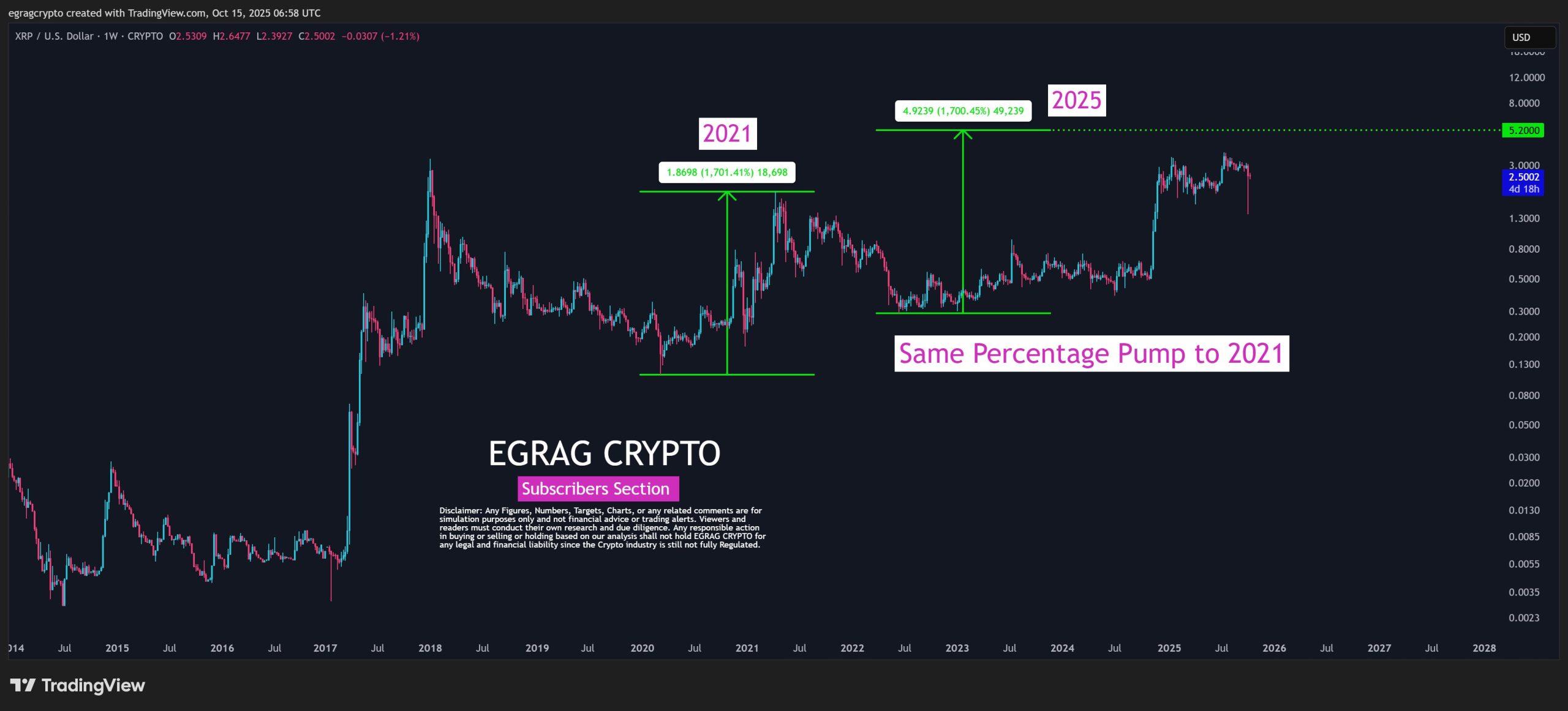 However, for those eyeing the next few months, the analyst acknowledged the frustration of watching XRP slip from the $2.80 zone down to around $2.50. Referencing another well-known trader, @BCBacker, who exited near the highs, EGRAG said those wishing to sell could do so, but warned that re-entering later may come with regret.