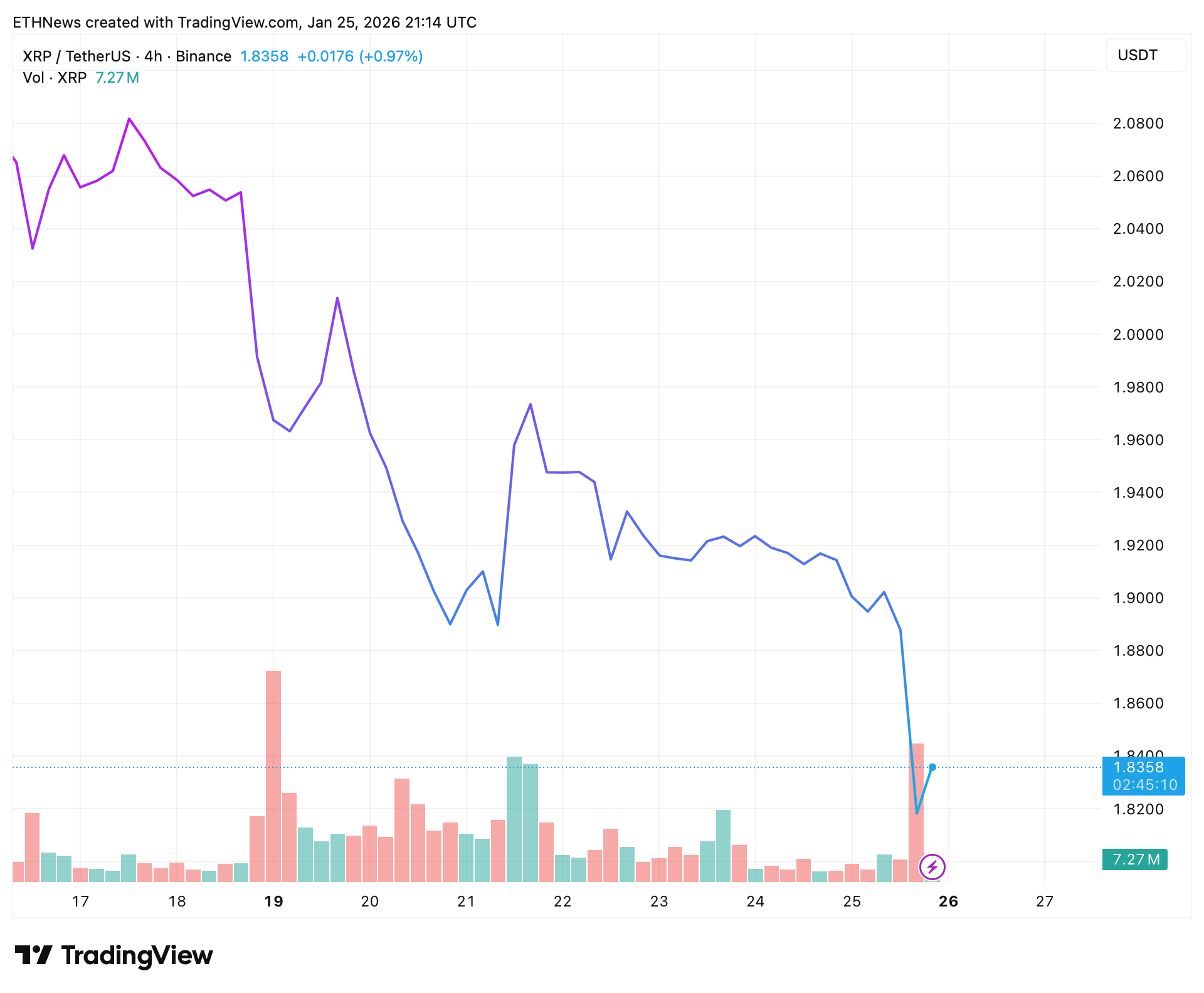 If the $1.82 area continues to hold, XRP could consolidate as volatility cools and traders reassess positioning. - Renewed downside pressure: