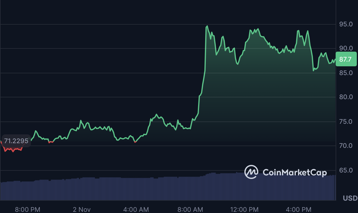 Dash (DASH) jumped 23.5% in the past 24 hours as the privacy coin sector experienced a strong rebound. The asset, once one of the top five cryptocurrencies by market cap, remains a cornerstone of the privacy ecosystem, offering users optional transaction anonymity through its PrivateSend feature.